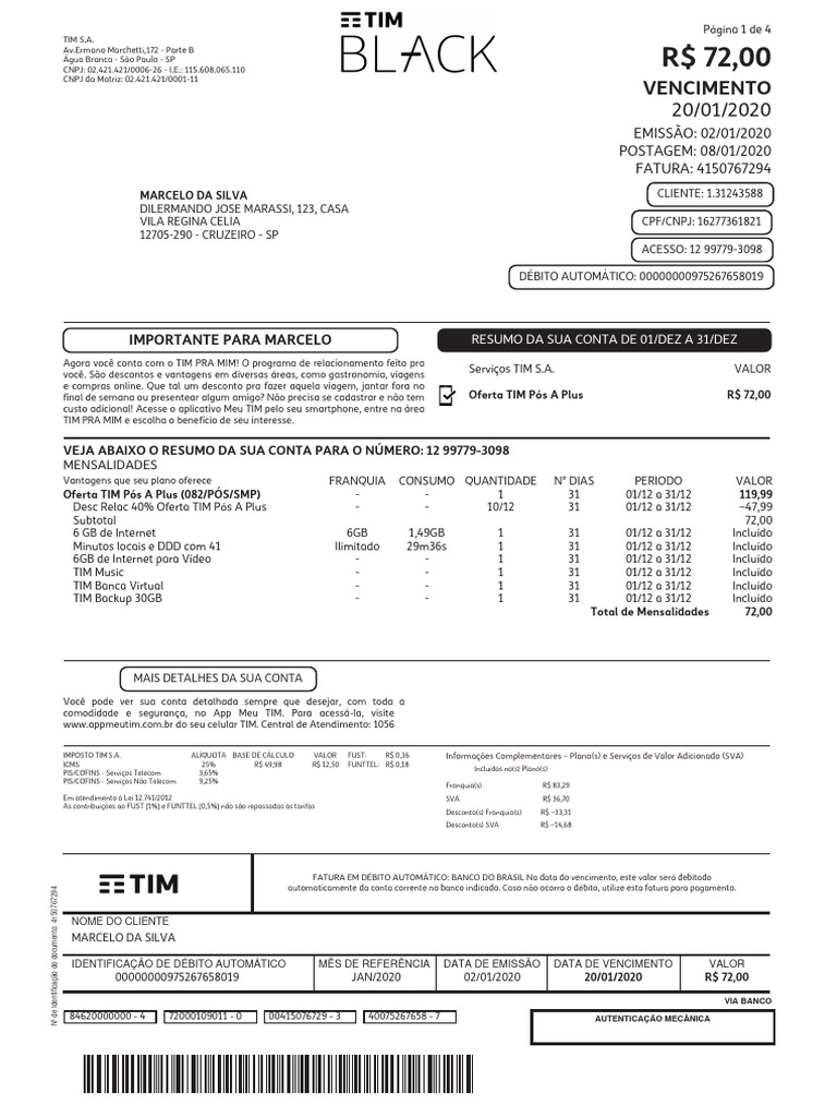 00000000975267658019 JAN/2020 02/01/2020 20/01/2020 R$ 72,00
