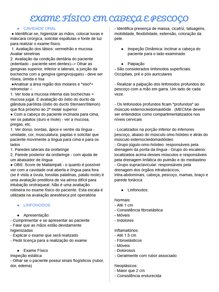 EXAME FÍSICO EM CABEÇA E PESCOÇO