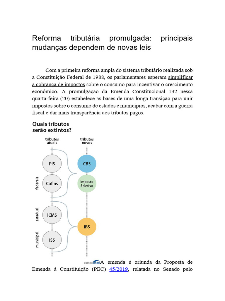 A reforma tributária não modificou apenas regras relativas aos impostos