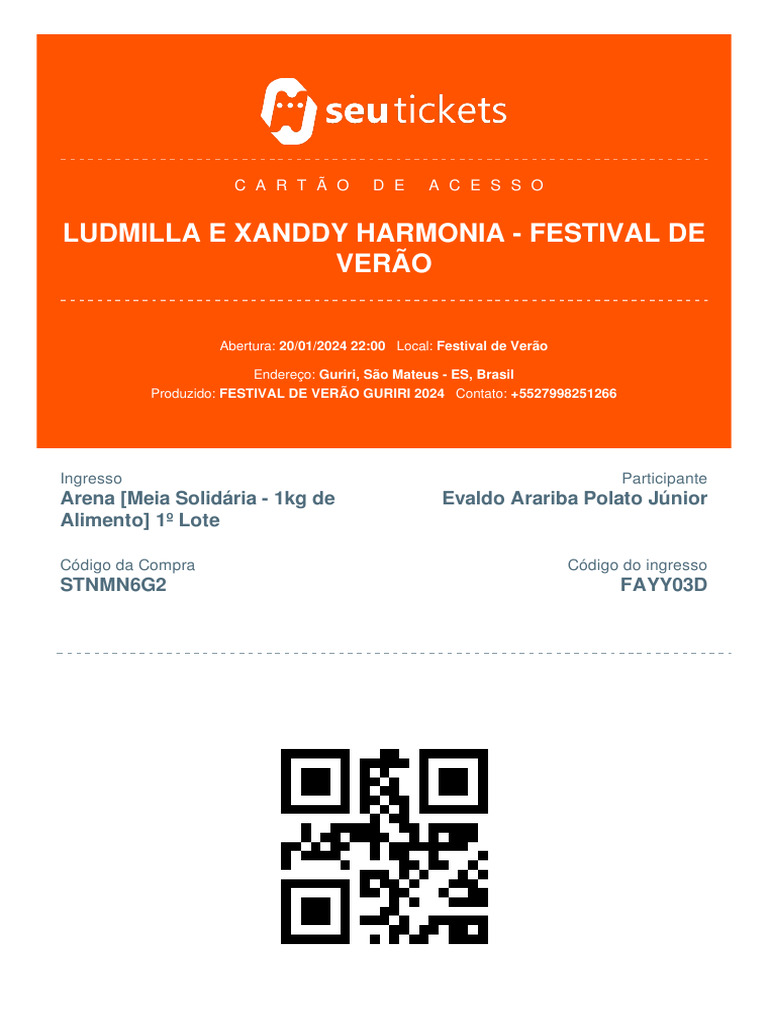 compra do ingresso e na entrada do evento. Caso exista suspeita de fraude no seu ingresso o mesmo poderá