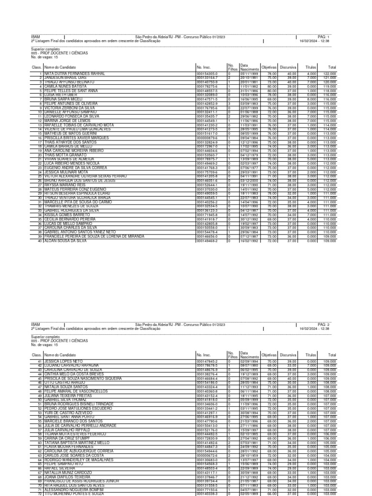 2ª Listagem Final dos candidatos aprovados em ordem crescente de Classificação 16/02/2024 - 12:38