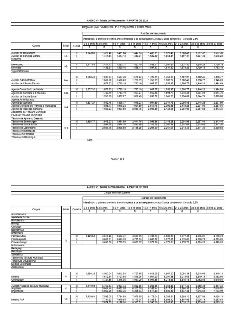 ANEXO VI- Tabela de Vencimento - A PARTIR DE 2023