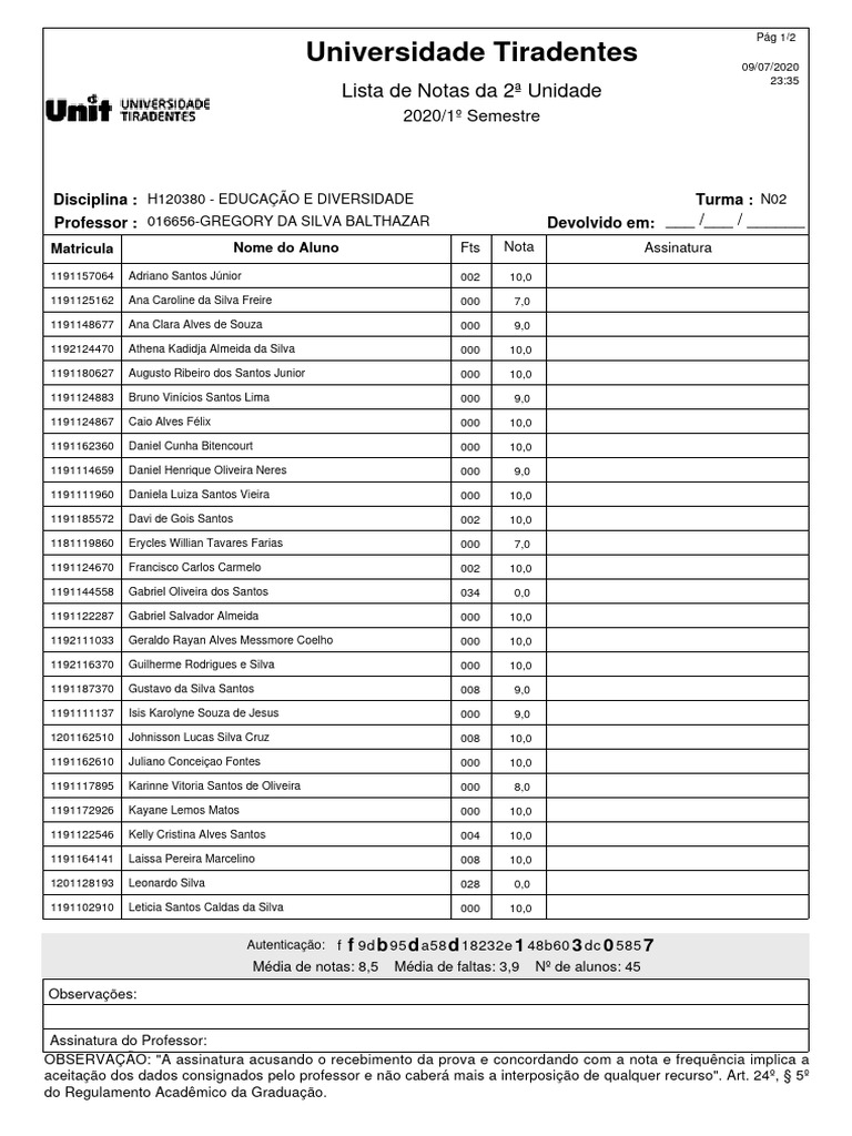 Universidade Tiradentes 09/07/2020