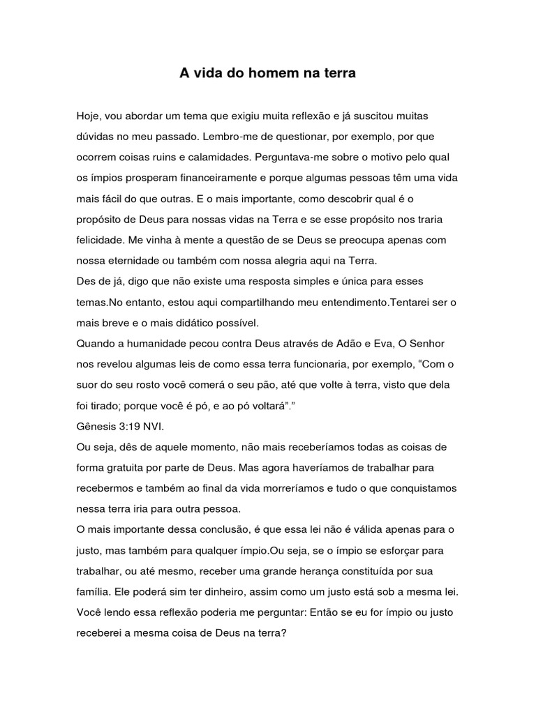 propósito de Deus para nossas vidas na Terra e se esse propósito nos traria