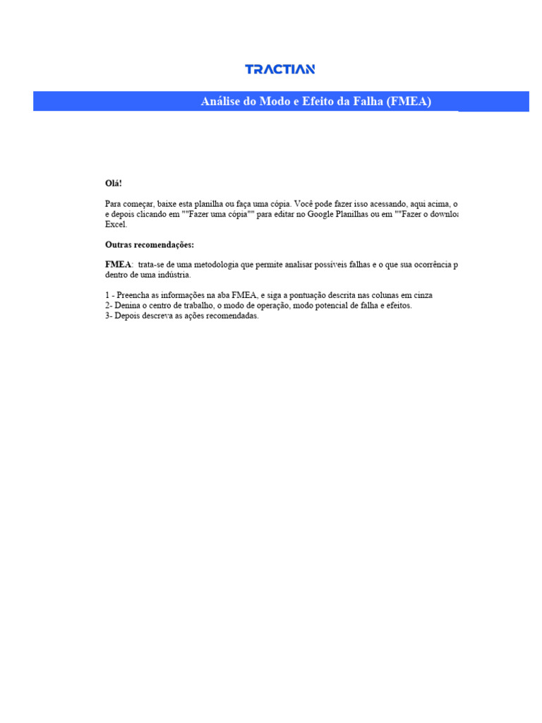 1 - Preencha as informações na aba FMEA, e siga a pontuação descrita nas colunas em cinza