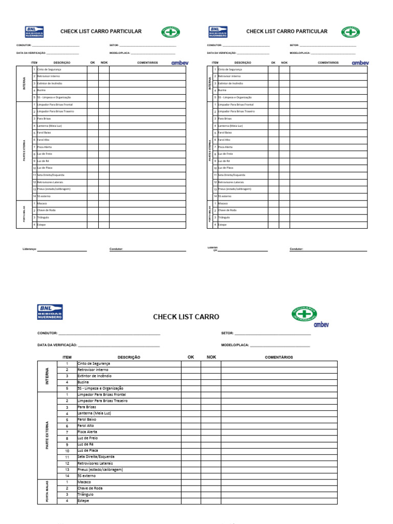 13 Pneus (estado/calibragem) NOK OK OK OK OK OK NOK OK