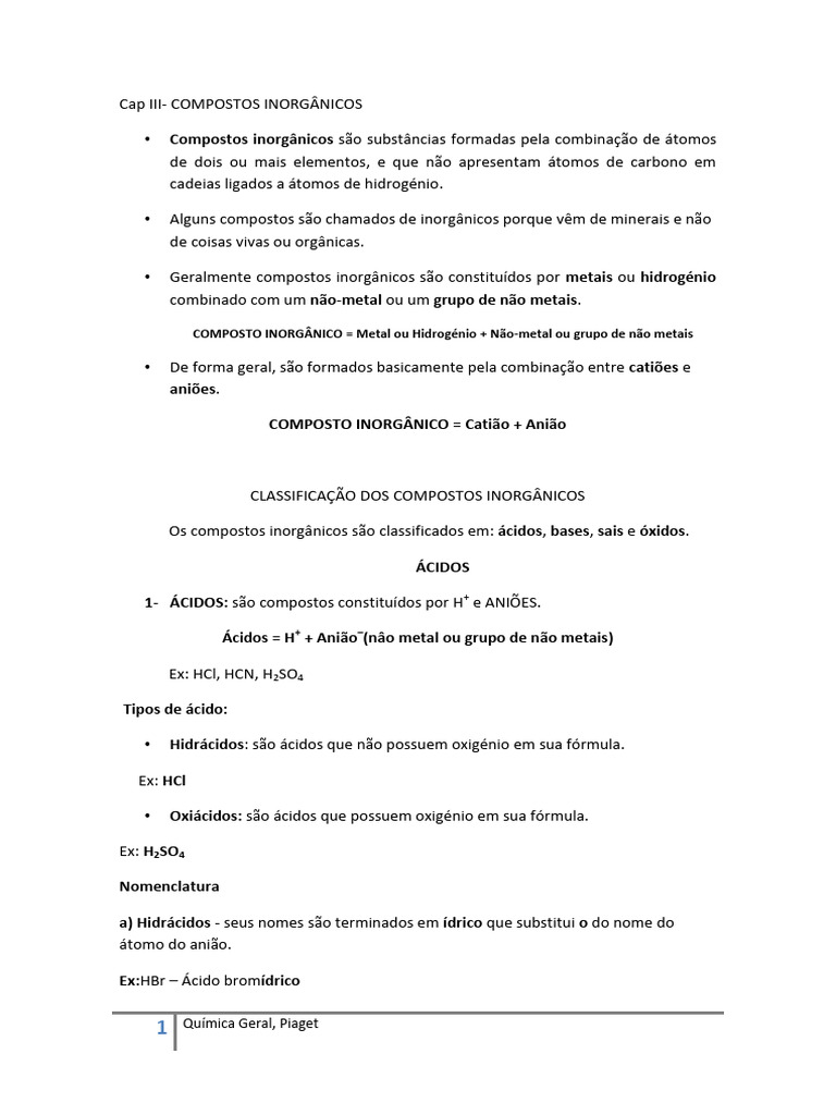 1- ÁCIDOS: são compostos constituídos por H+ e ANIÕES.