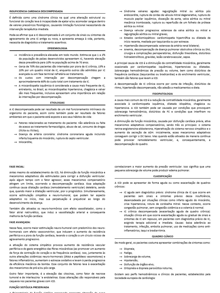 que, quando maior a dilatação ventricular, pior o prognóstico. Simultaneamente, ® IC aguda sem diagnóstico prévio: síndrome clínica de IC que ocorre em