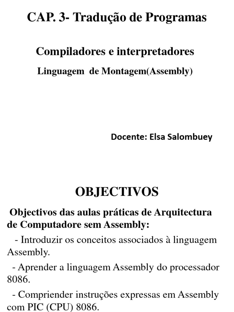 - Aprender a linguagem Assembly do processador
