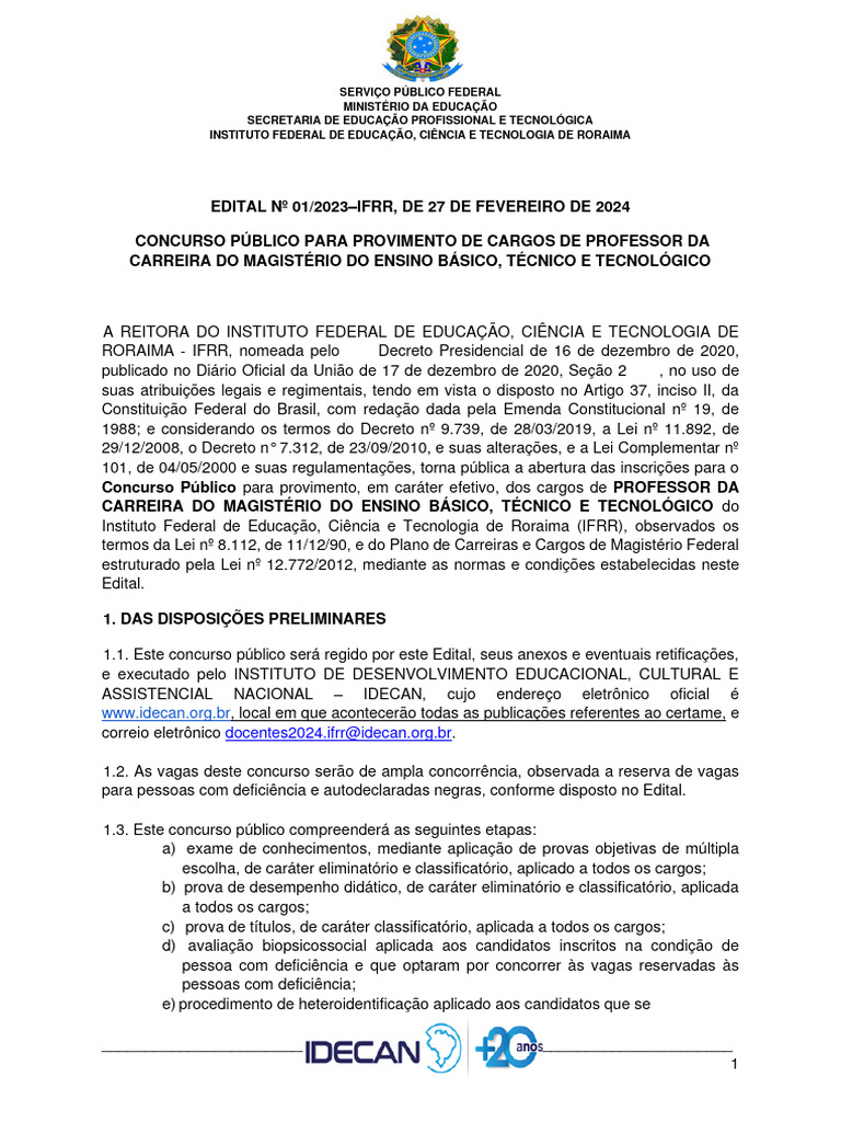 correio eletrônico docentes2024.ifrr@idecan.org.br.