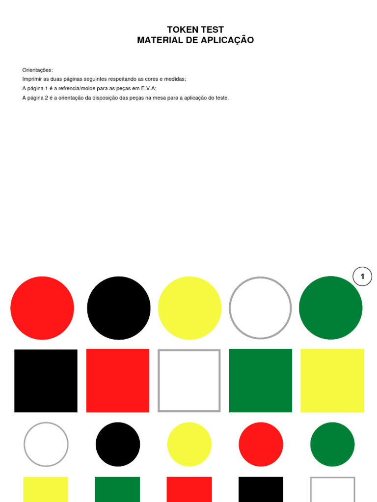 A página 2 é a orientação da disposição das peças na mesa para a aplicação do teste.