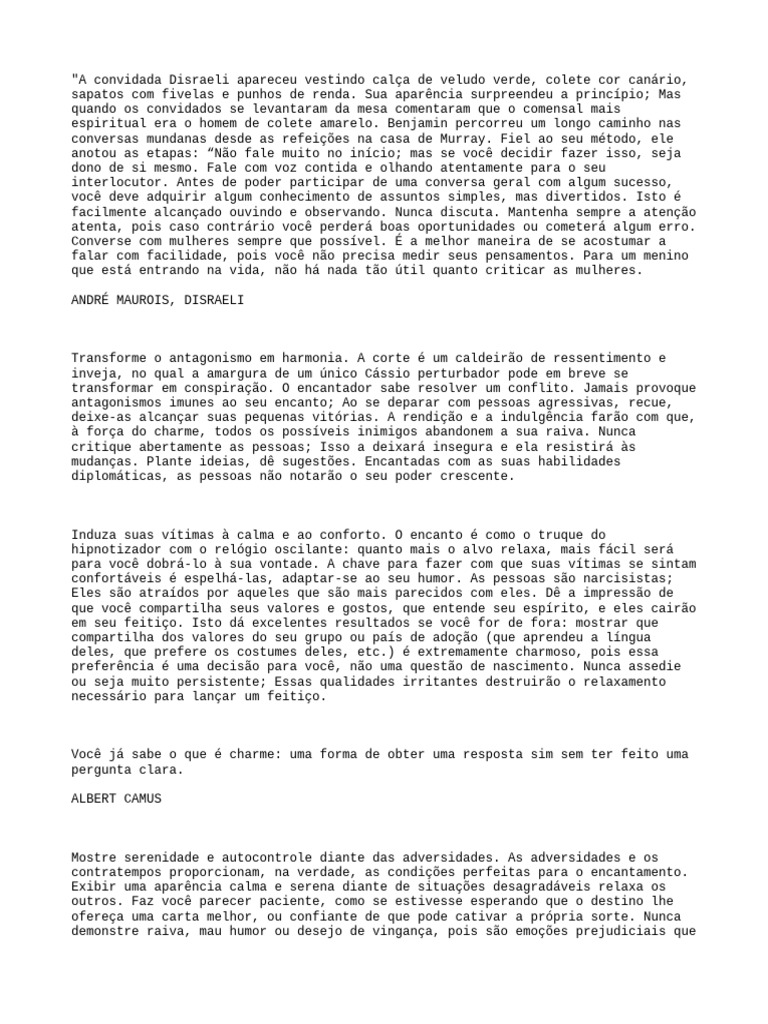 transformar em conspiração. O encantador sabe resolver um conflito. Jamais provoque