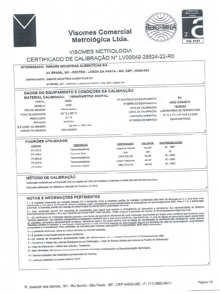 CERTIFICADO DE CALIBRACAO N° LV00049-28524-22-RO