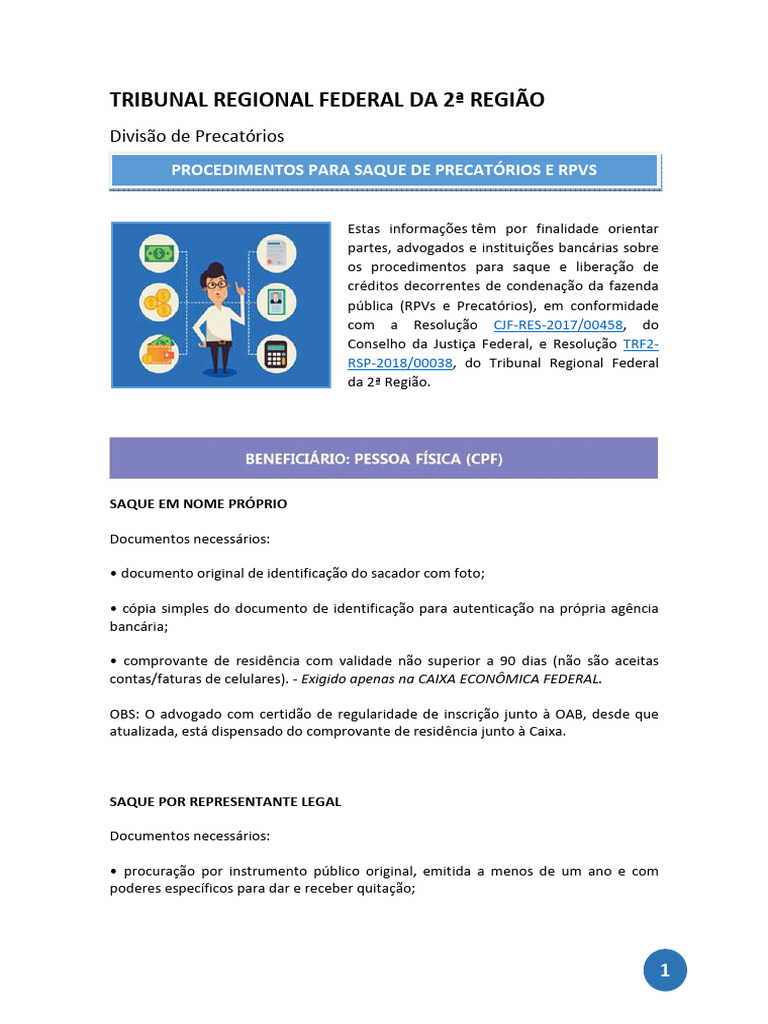 PROCEDIMENTOS PARA SAQUE DE PRECATÓRIOS E RPVS