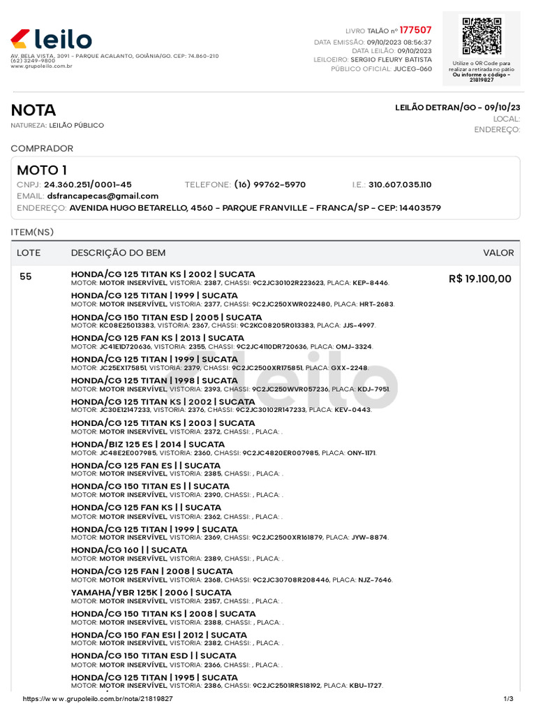 NOTA LEILÃO DETRAN/GO - 09/10/23