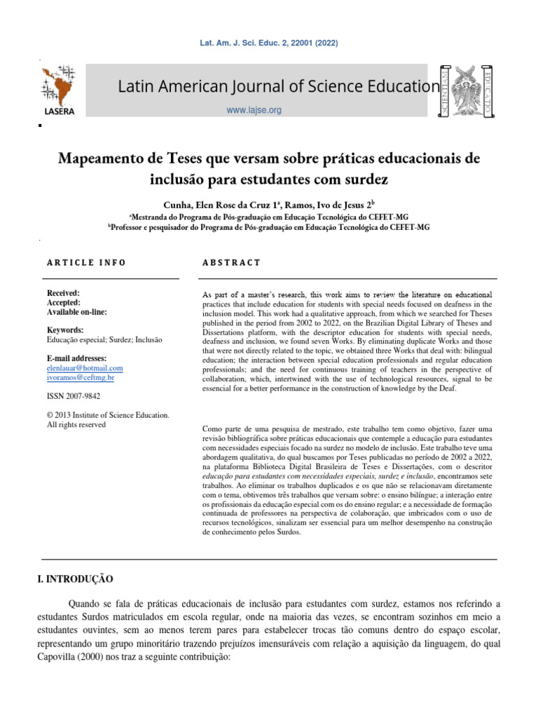 Cunha; Elen Rose da Cruz et al. / Lat. Am. J. Sci. Educ. 2, 22001 (2022) 2
