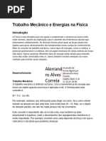 mente, uma vez que a definição de energia envolve outro conceito físico: trabalho. Teoricamente e de forma simplifica-