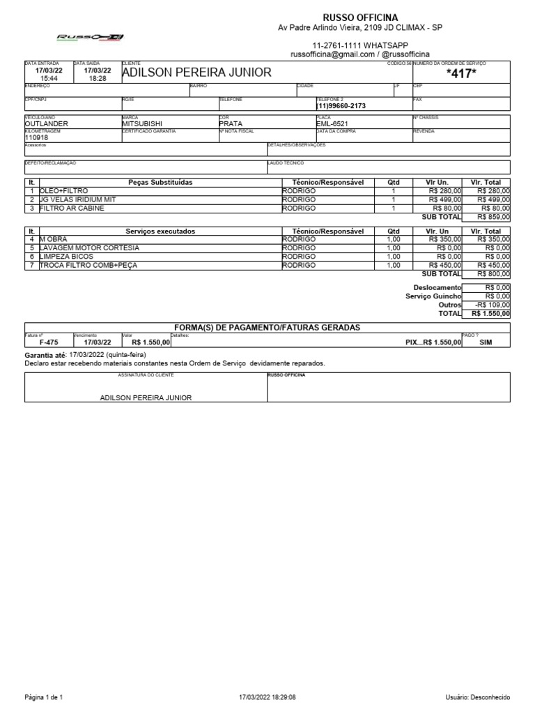 F-475 17/03/22 R$ 1.550,00 PIX...R$ 1.550,00 SIM