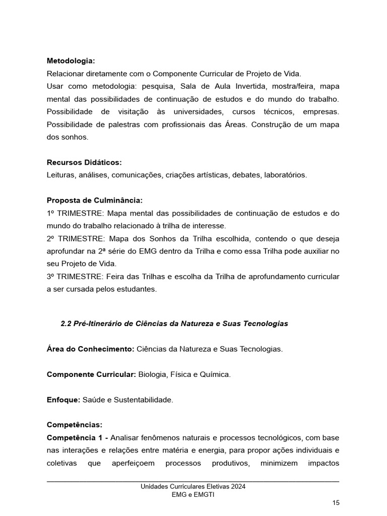 2.2 Pré-Itinerário de Ciências da Natureza e Suas Tecnologias