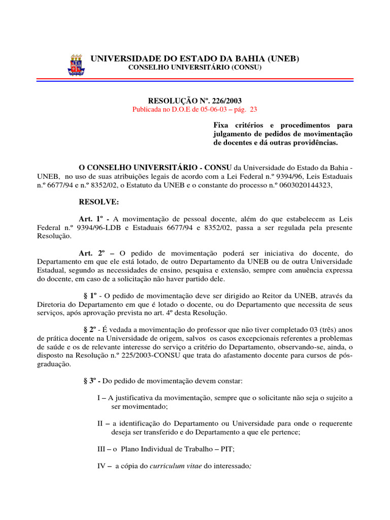 n.º 6677/94 e n.º 8352/02, o Estatuto da UNEB e o constante do processo n.º 0603020144323,