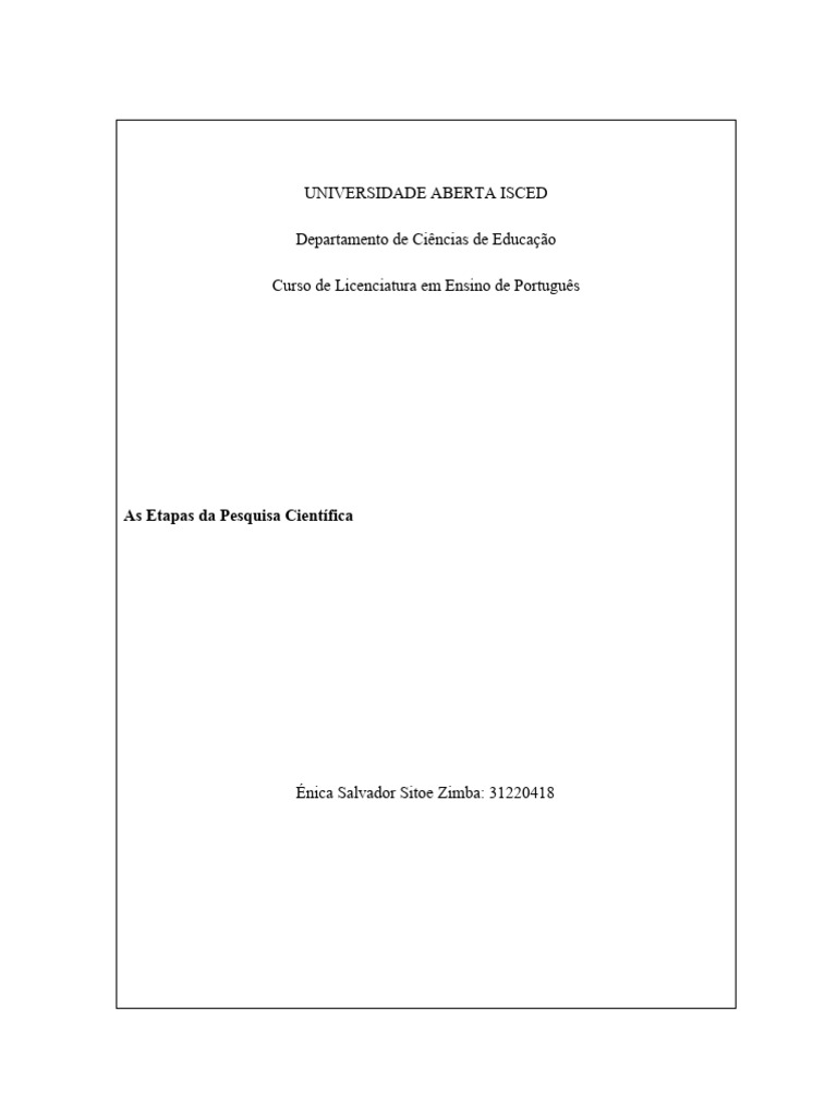 O presente trabalho objectivou analisar as principais etapas da pesquisa científica, onde foi