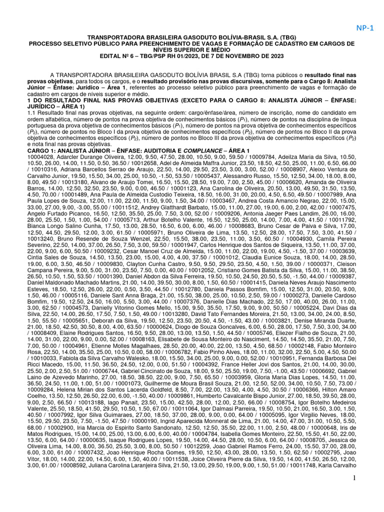 com o Edital nº 1 – TBG/PSP RH 01/2023, de 13 de julho de 2023, e suas alterações, ou com este edital.