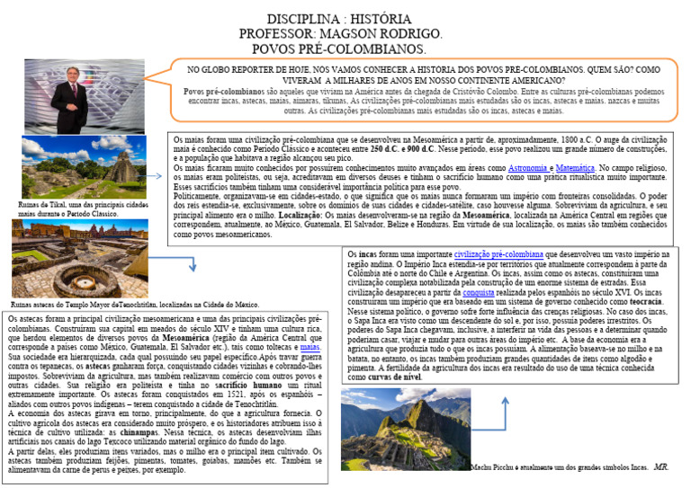 outras. As civilizações pré-colombianas mais estudadas são os incas, astecas e maias.