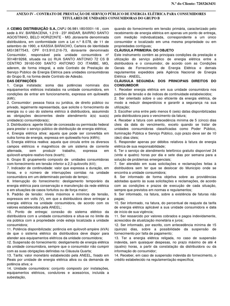 ANEXO IV - CONTRATO DE PRESTAÇÃO DE SERVIÇO PÚBLICO DE ENERGIA ELÉTRICA PARA CONSUMIDORES