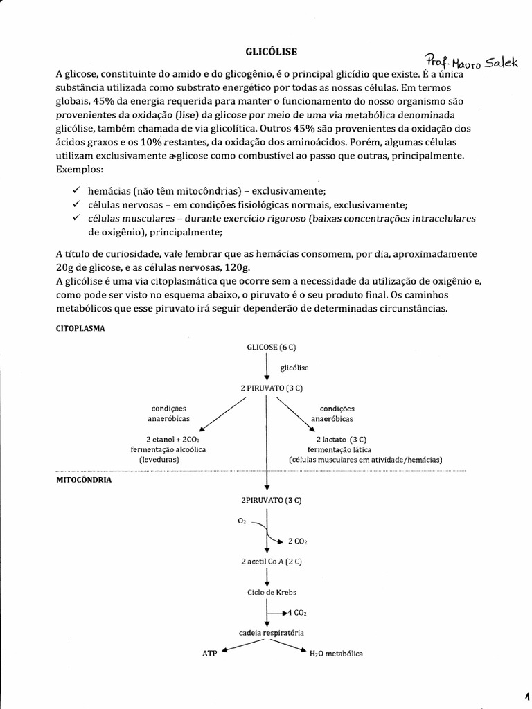 A glicólise é uma via citoplasmática que ocorre sem a neressidade da utilização de oxigênio e,