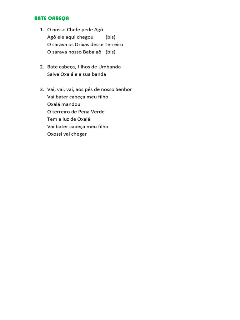 2. Bate cabeça, filhos de Umbanda