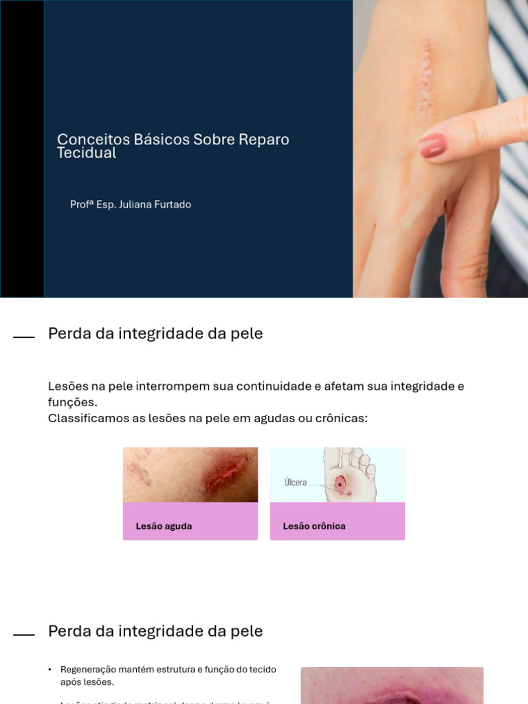• Processo de reparo da pele após lesão envolve fases de inflamação, proliferação e