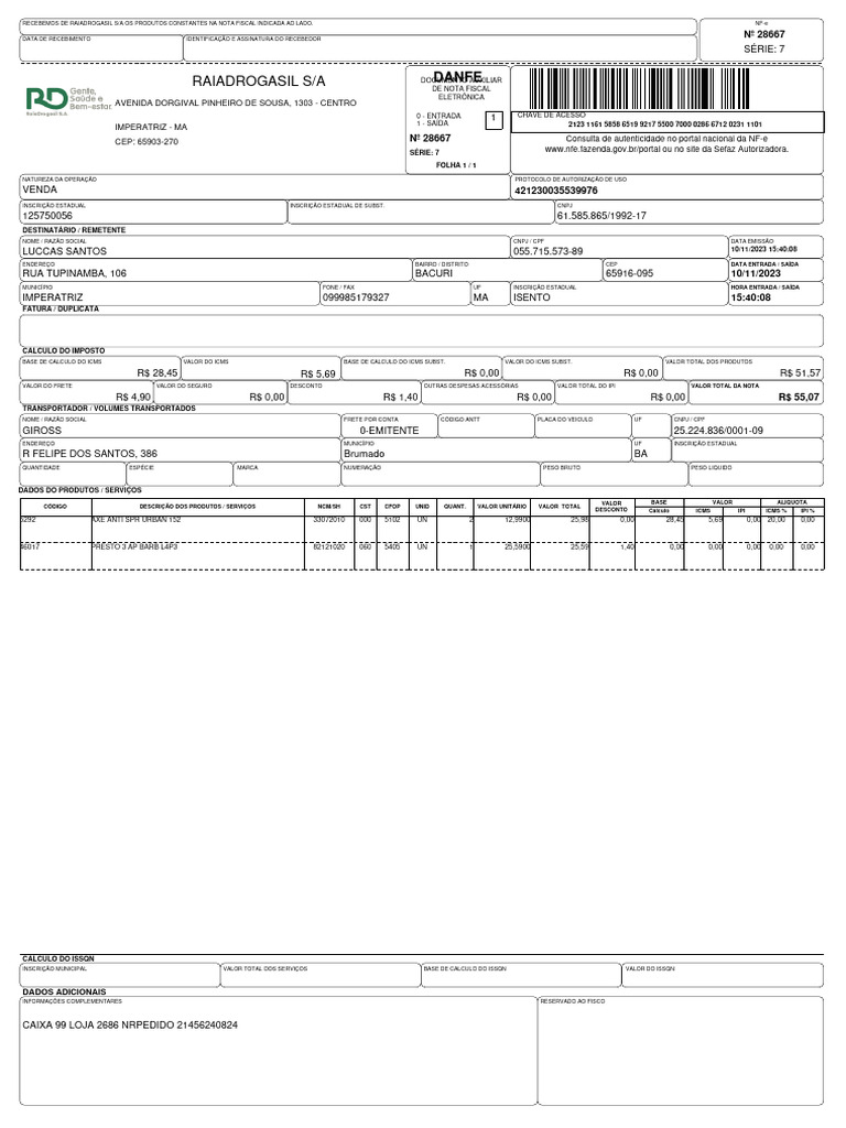 CEP: 65903-270 Nº 28667 Consulta de autenticidade no portal nacional da NF-e