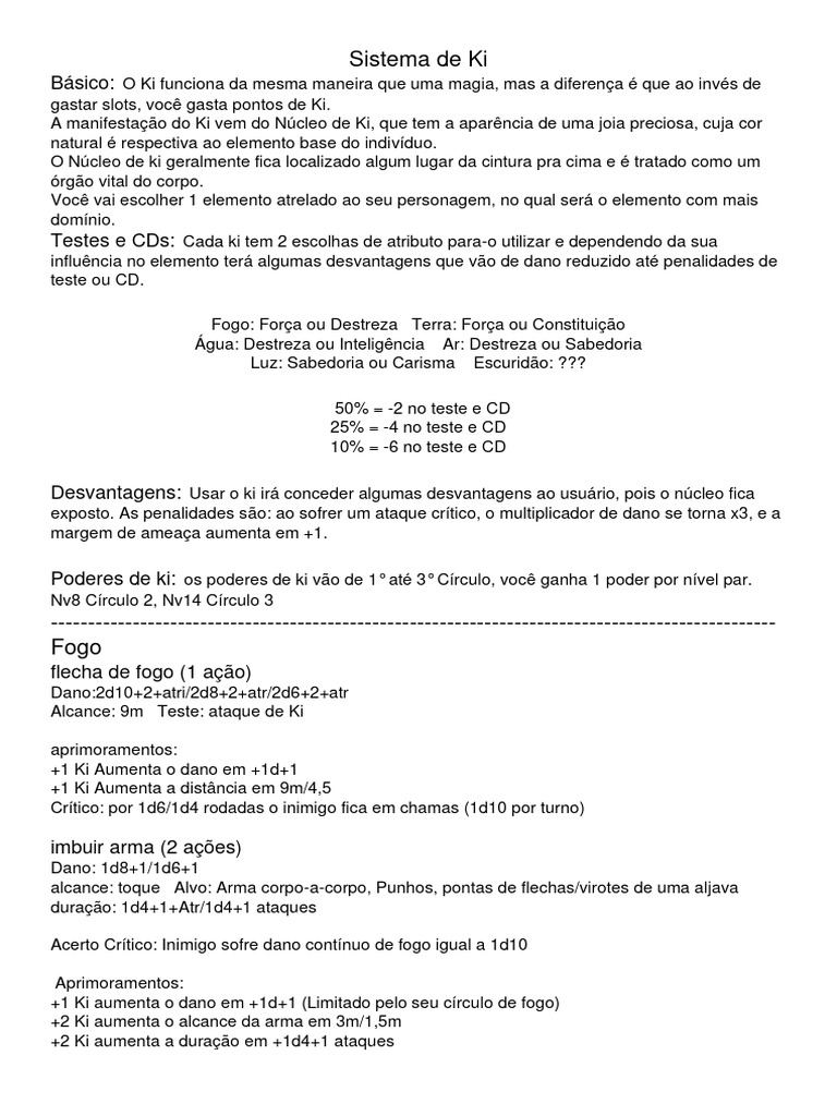 Básico: O Ki funciona da mesma maneira que uma magia, mas a diferença é que ao invés de