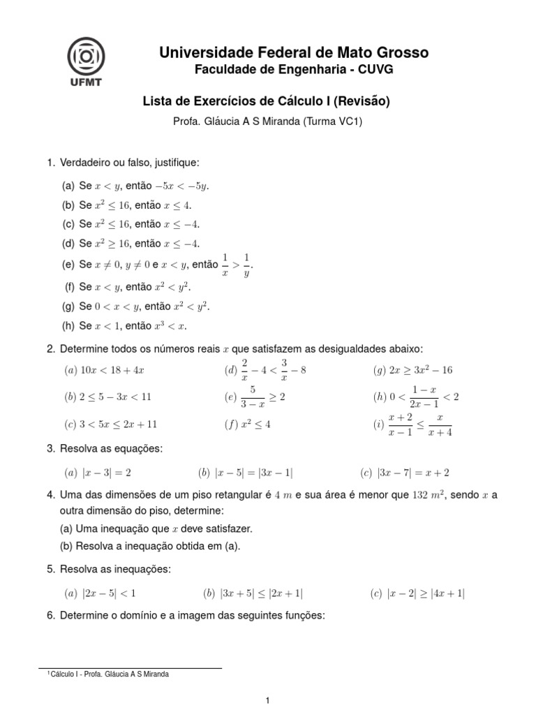 6 Cálculo I - Profa. Gláucia A S Miranda
