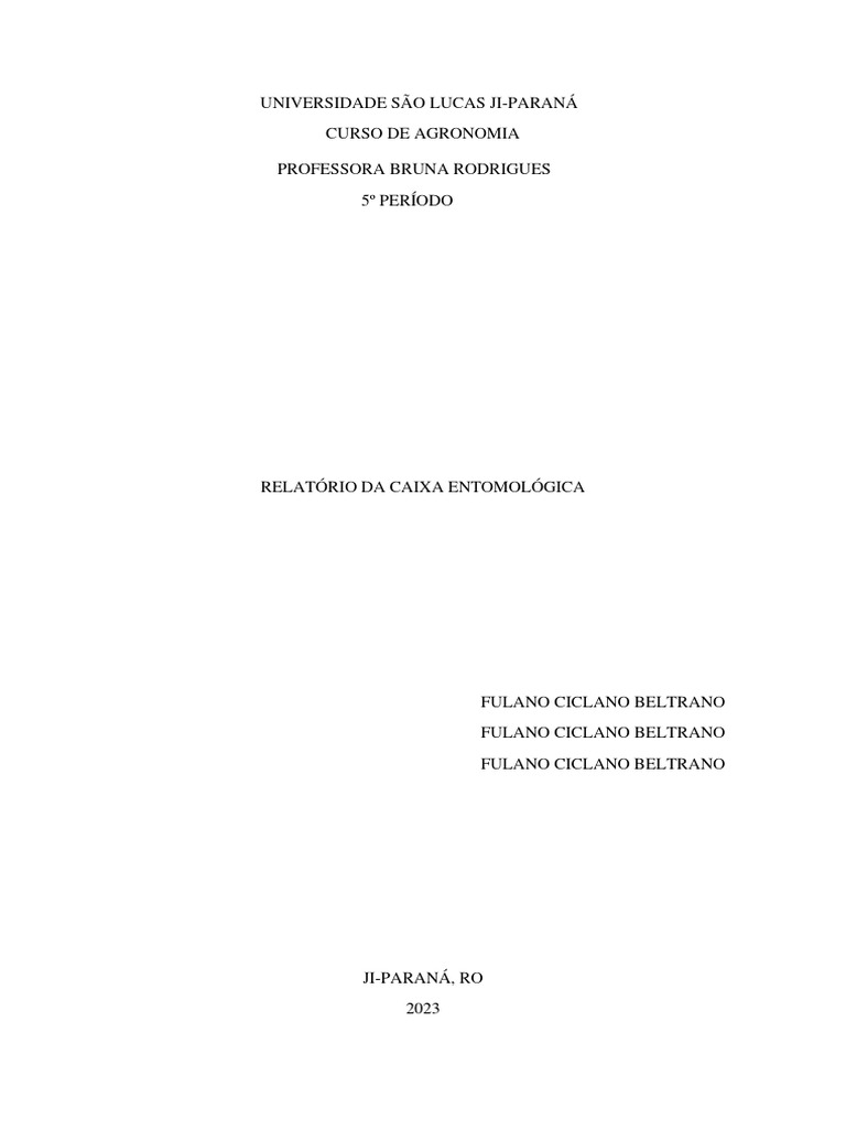 RELATÓRIO DA CAIXA ENTOMOLÓGICA