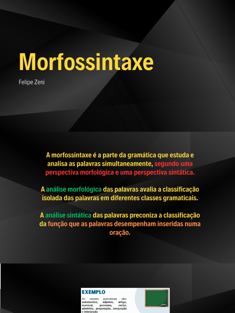 A morfossintaxe é a parte da gramática que estuda e