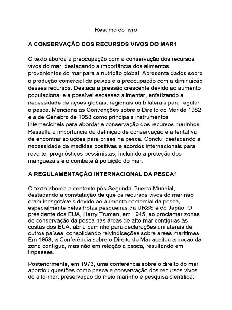 a pesca. Menciona as Convenções sobre o Direito do Mar de 1982