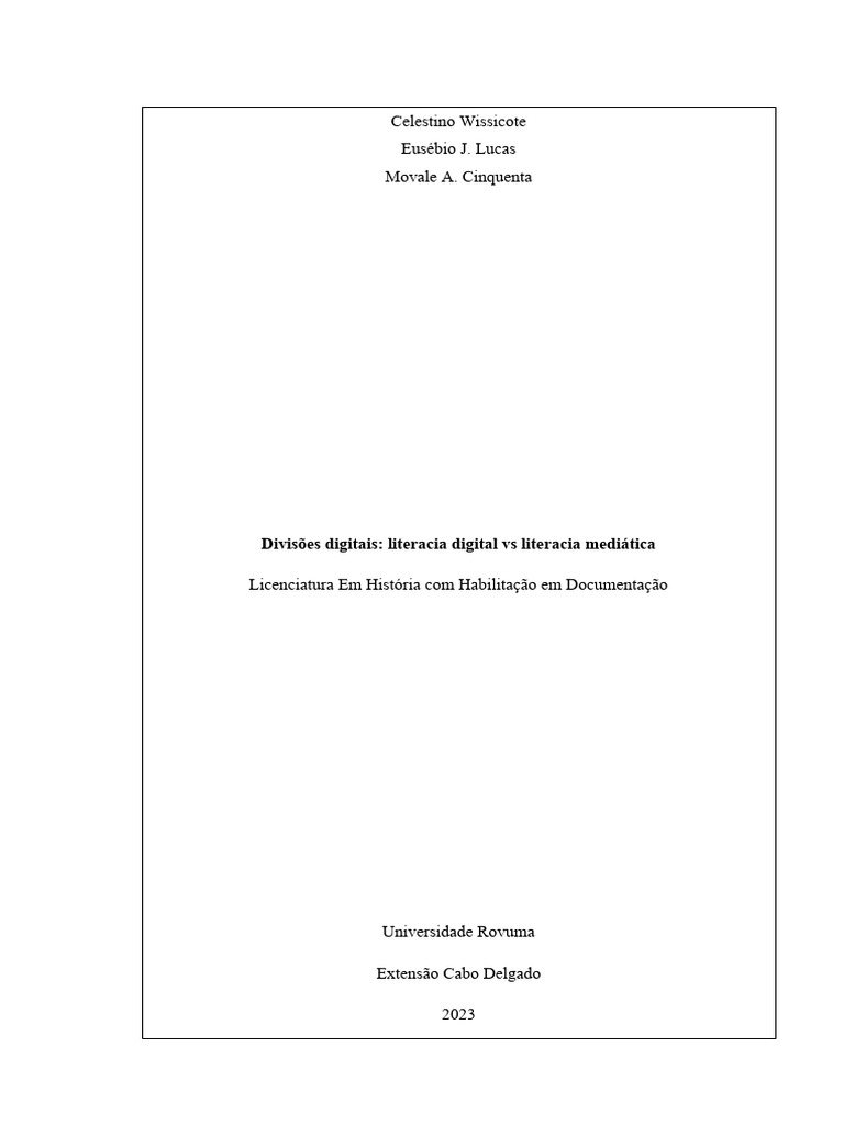 O presente trabalho tem como tema Divisões digitais: literacia digital vs literacia