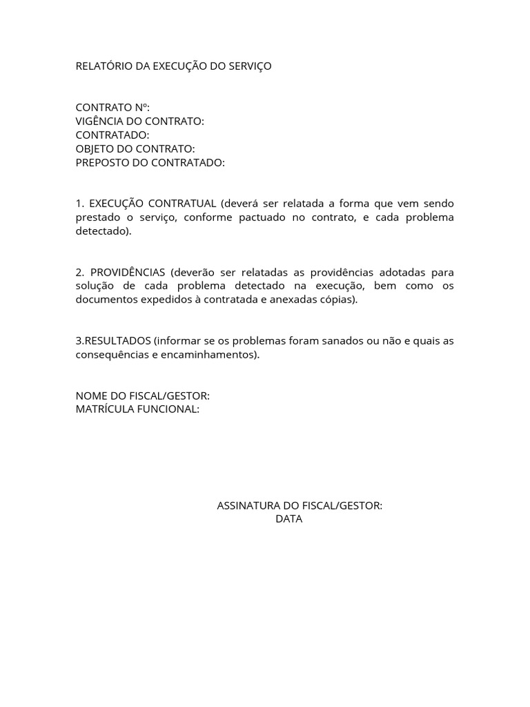 1. EXECUÇÃO CONTRATUAL (deverá ser relatada a forma que vem sendo