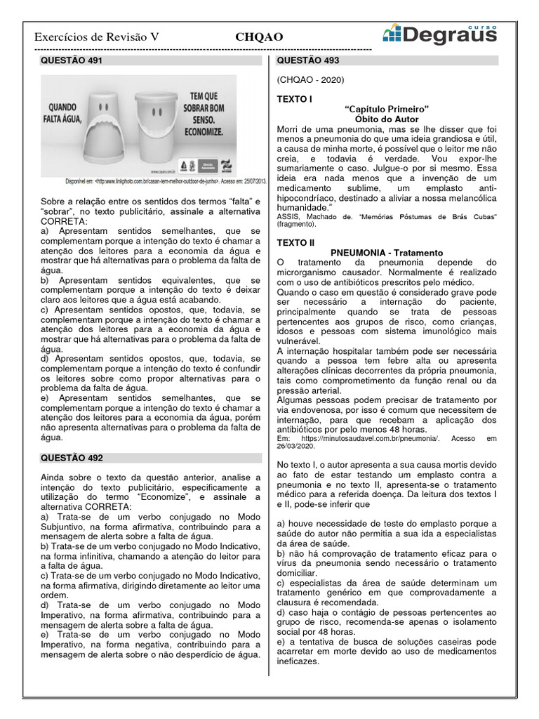 intenção do texto publicitário, especificamente a pneumonia e no texto II, apresenta-se o tratamento