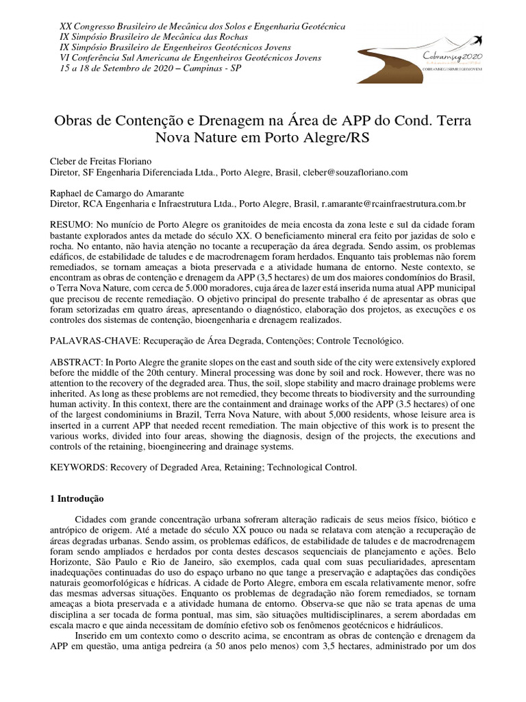 PALAVRAS-CHAVE: Recuperação de Área Degrada, Contenções; Controle Tecnológico.