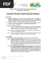 1.1 Este edital tem caráter de cadastro de reserva, considerando que as agências de fomento externas (CNPq e