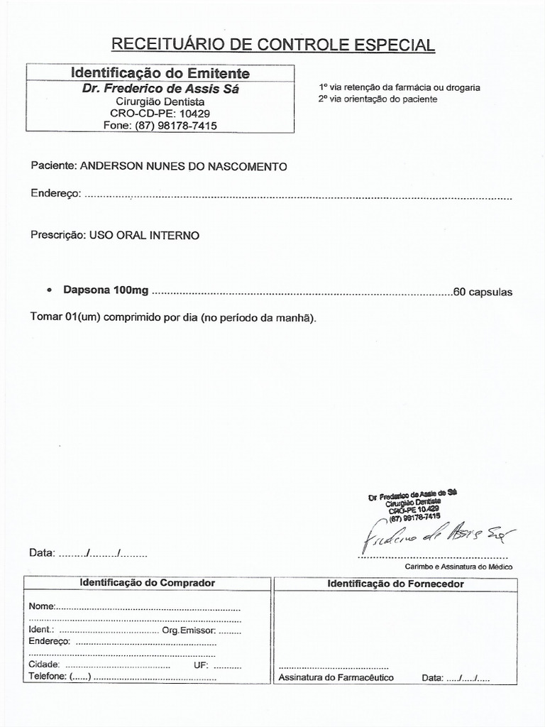 Receituário de Controle Especial: DR (A) - Willian Da Silva Lopes
