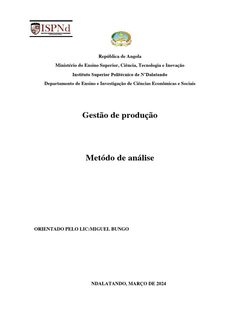 debruçaremos sobre o método de análise na gestão de produção. Esse método permite