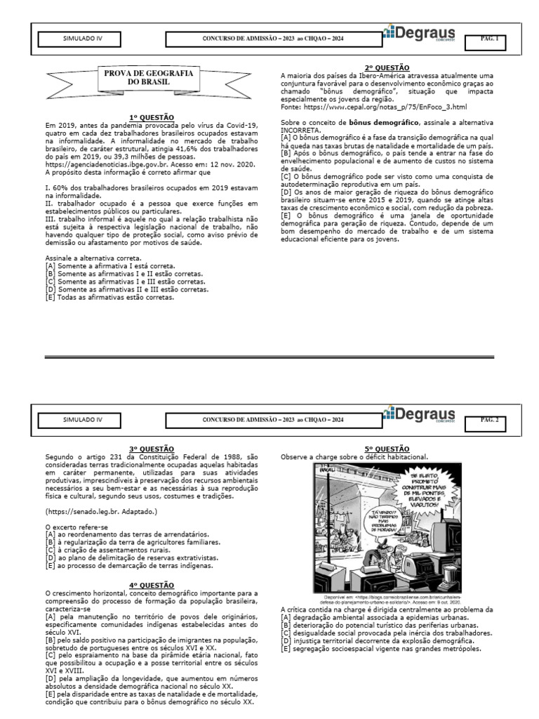 SIMULADO IV CONCURSO DE ADMISSÃO – 2023 ao CHQAO – 2024 PAG. 2