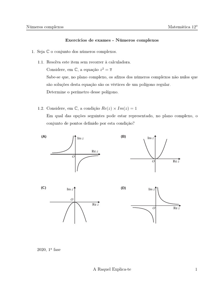 1.2. Considere, em C, a condição Re(z) ⇥ Im(z) = 1