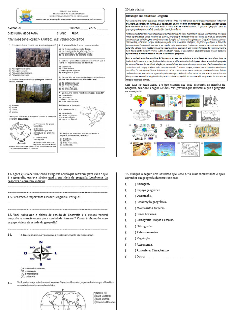 DISCIPLINA: GEOGRAFIA 6º ANO PROF: __________________