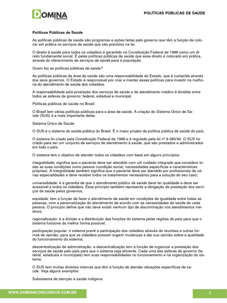 ação ou programa. No Brasil, o direto à saúde é viabilizado por meio do Sistema Único de Saúde