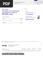 após o vencimento serão cobrados encargos de 2% e juros de 1% ao mês em conta futura. | Central de Atendimento ANATEL: 1331 e www.anatel.gov.br. PLANOS ANATEL: Vivo Controle 6GB III: 116/POS/SMP.