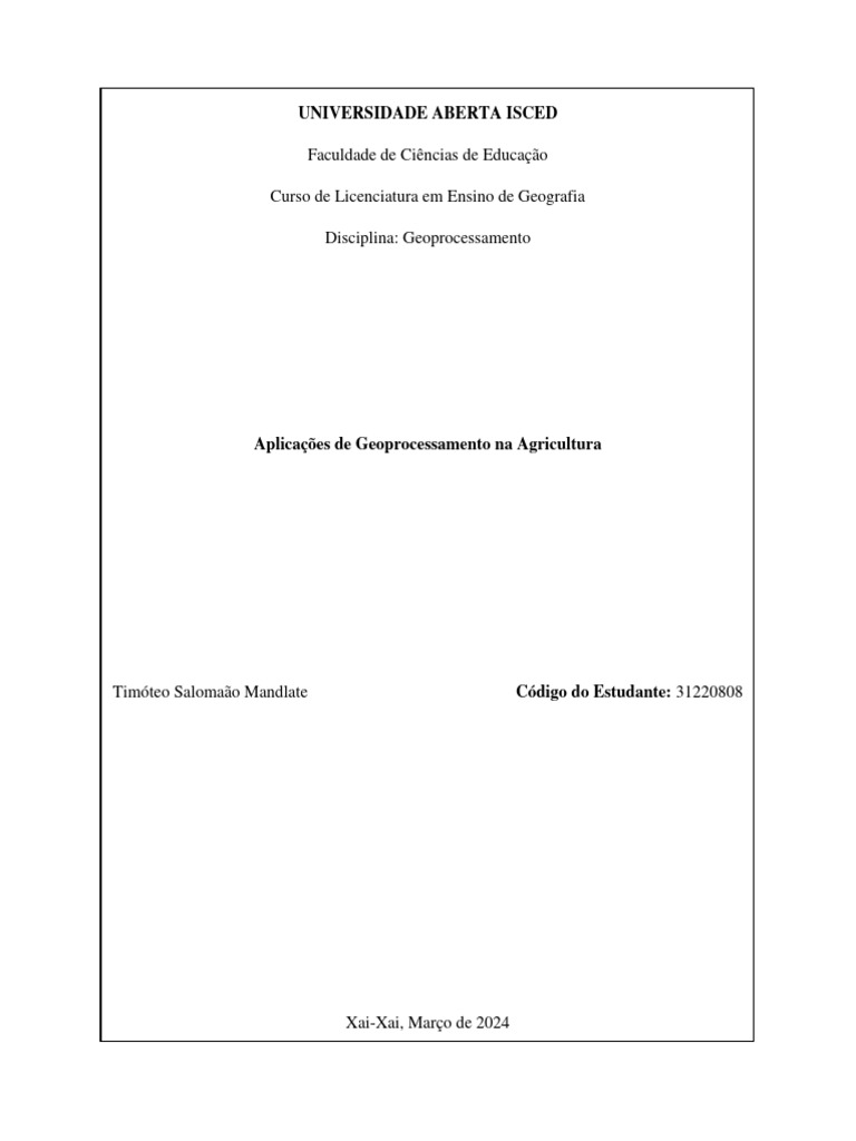 Timóteo Salomaão Mandlate Código do Estudante: 31220808